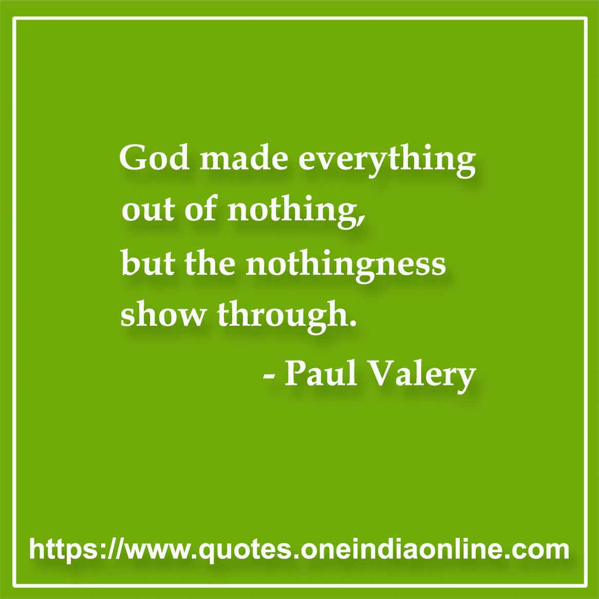 God made everything out of nothing, but the nothingness show through. - God Quotes by Paul Valery Download or Share |