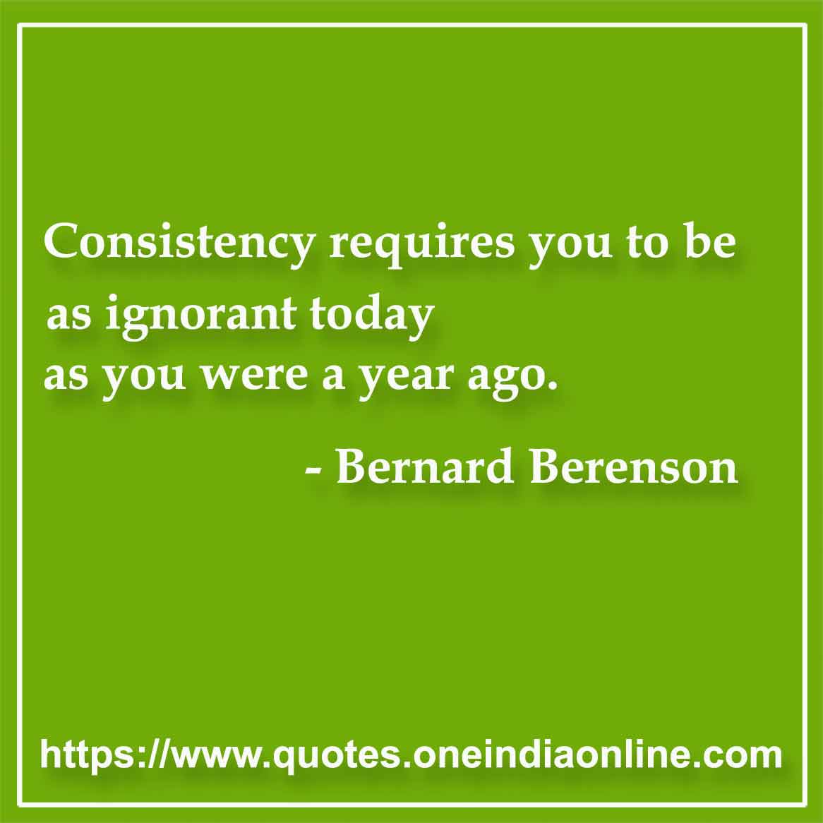 Consistency requires you to be as ignorant today as you were a year ago. - Ignorance Quotes by Bernard Berenson Download or Share |