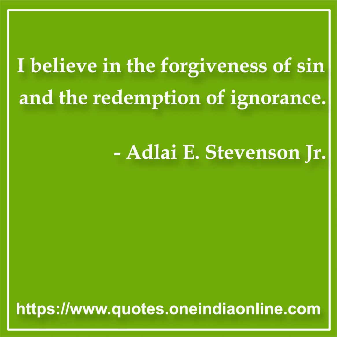 I believe in the forgiveness of sin and the redemption of ignorance. - Ignorance Quotes by Adlai E. Stevenson Jr. Download or Share |