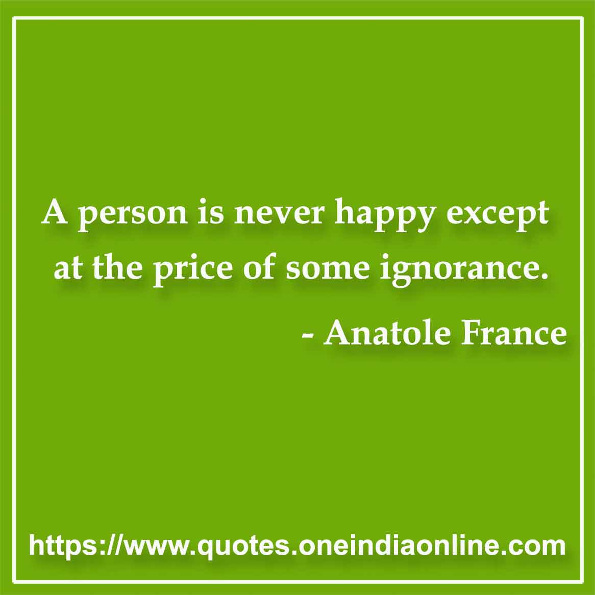 A person is never happy except at the price of some ignorance. - Ignorance Quotes by Anatole France Download or Share |